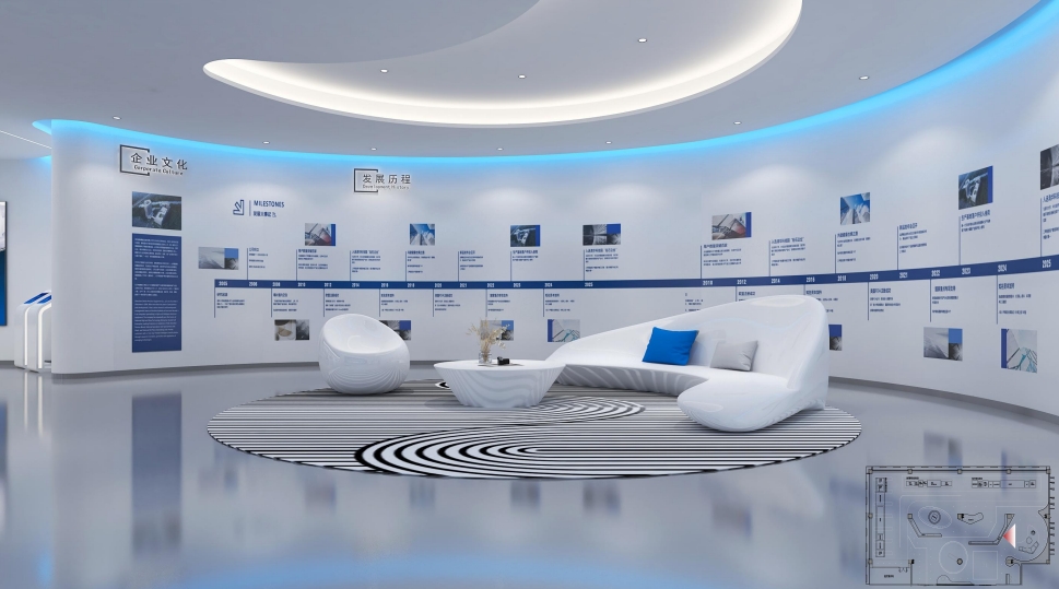 考虑空间环境和布局: 文化墙的设计应该考虑展厅的空间环境和布局,以确保文化墙能够与展厅的整体设计风格和氛围相协调。设计师可以根据展厅的实际情况,合理规划文化墙的位置、尺寸和布局,使之与展厅的其他元素相得益彰。