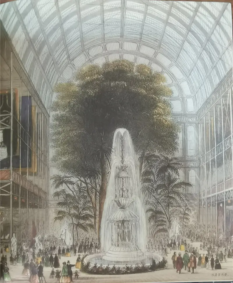 图1-3 英国政府于1851年5月在伦敦海德公园举办了首届国际博览会、以现代建筑材料钢架玻璃结构的展览馆“水品宫”成为现代展示的标志性作品、为现代展厅尤其是会展领域的展厅开启了新时代。