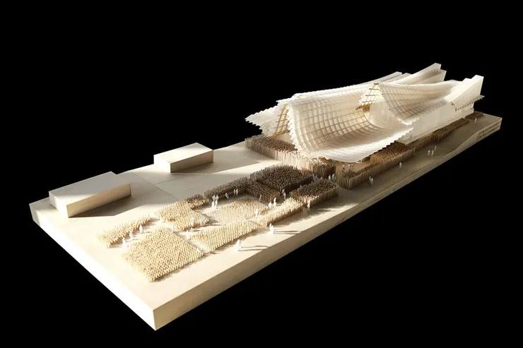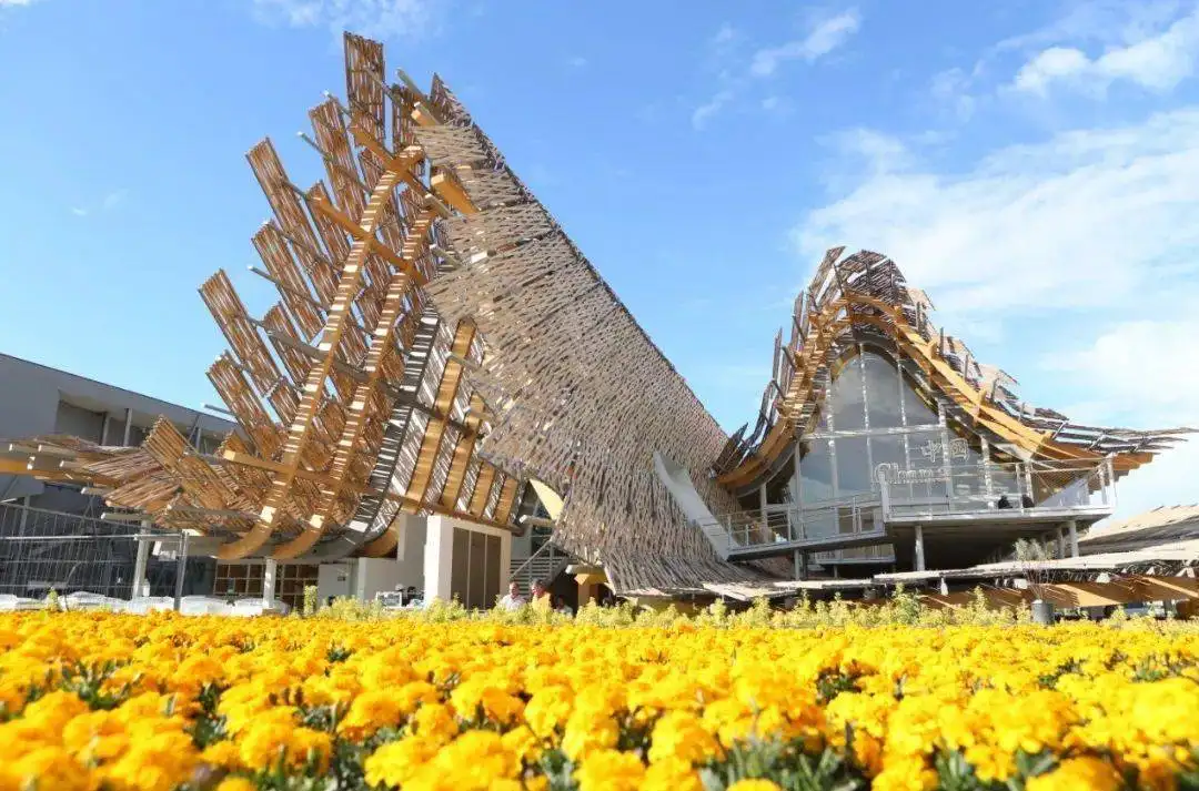图1-5 2015年意大利米兰世博会中国国家馆(图片摘门中国设计在线),设计的主题是“希望的田野.生命的源泉”。设计理念正是基于对“天、地、人”的诠释。“天地人和”蕴含了中华民族的智慧与精神.传播着中国博大厚重的文化精神、展示出泱洪大国的气度与风范。