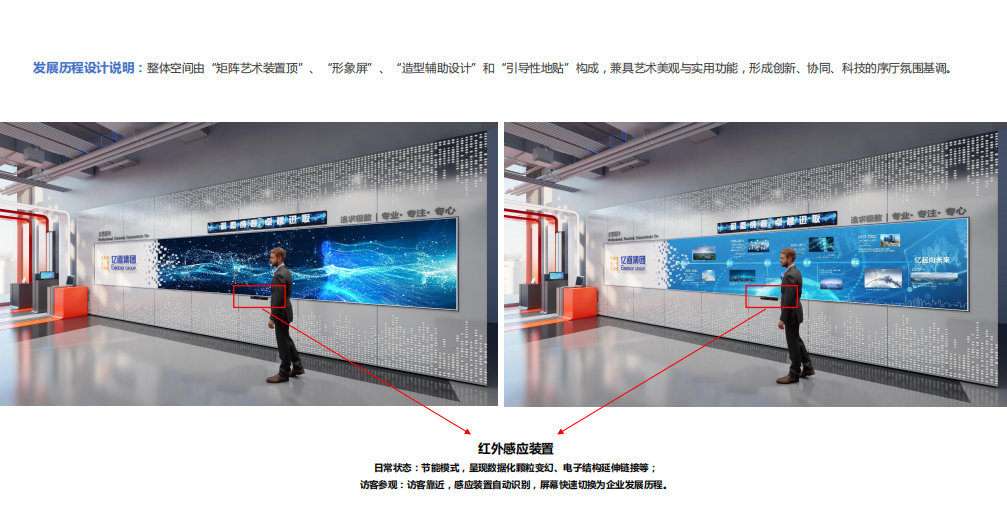 智能感应展厅:通过感应设备(如传感器、摄像头等)来感知参观者的动作或位置,从而触发相应的展示内容或互动效果。例如,当参观者走近某个展品时,展厅可以自动播放相关的视频或信息。